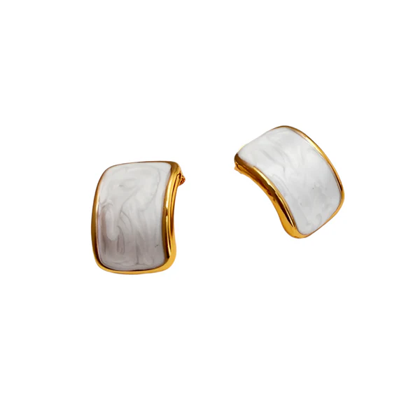 Σκουλαρίκια επιχρυσωμένο ατσάλι λευκά με καμπύλη