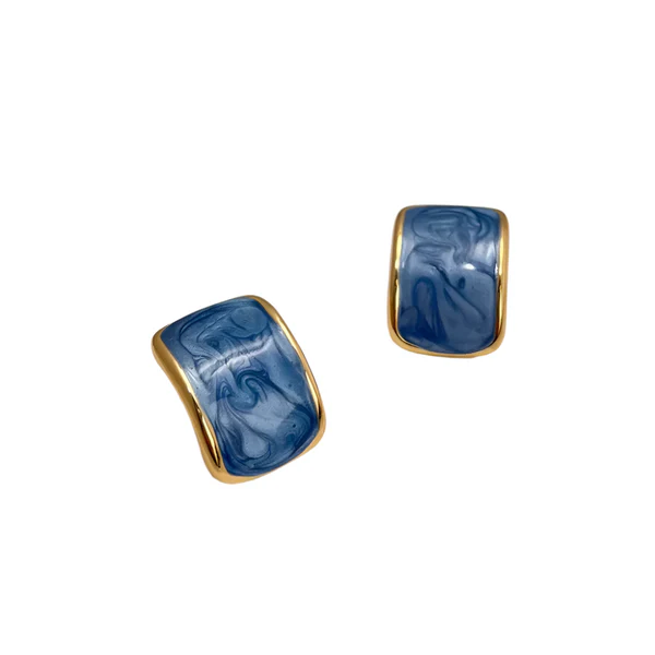Σκουλαρίκια επιχρυσωμένο ατσάλι μπλε με καμπύλη