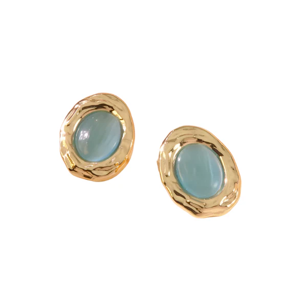 Σκουλαρίκια χρυσό ατσάλι οβάλ με γαλάζια πέτρα