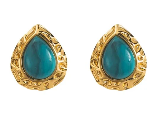 Σκουλαρίκια χρυσό ατσάλι με τιρκουαζ πέτρα